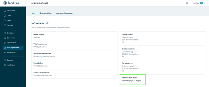 Dit artikel gaat in op het instellen (en aanpassen) van de facturatie instructies in Facilitee.
