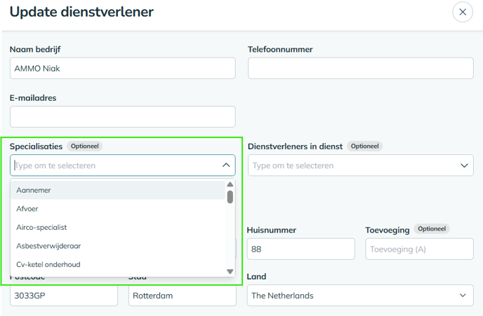 Vul ook de specialisaties aan. Deze komen later bij het selecteren van de dienstverlener in de taak naar voren, zodat je nóg beter kunt kiezen